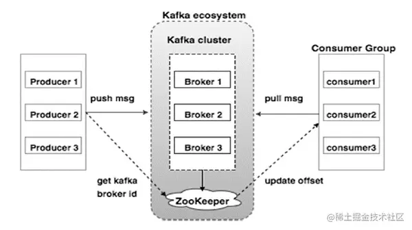 Kafka 集群 为了减少对 ZooKeeper 的依赖, 会选举集群内的一个 broker 作为 Controller Broker, Controller Broker 配合 ZooKeeper 一起管理和协调整个集群.