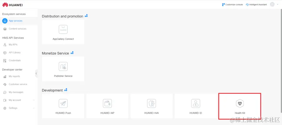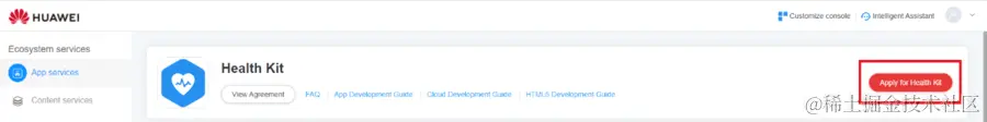 申请获取运动健康服务(Health Kit)。通过此链接登录Console后,单击下图中显示的“Health Kit”。