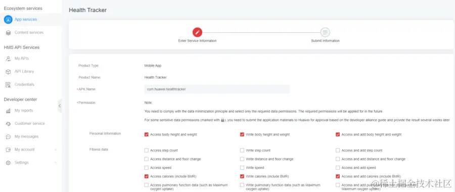 需要注意的是,你会看到下图中的某些选项被锁定,因为它们是敏感数据。如果你想在应用中使用敏感数据,还需要发送电子邮件至hihealth@huawei.com邮箱,标题命名为“申请Health Kit开放权限”。对方会尽快回复。你可以从点击此链接获得更多详细信息。