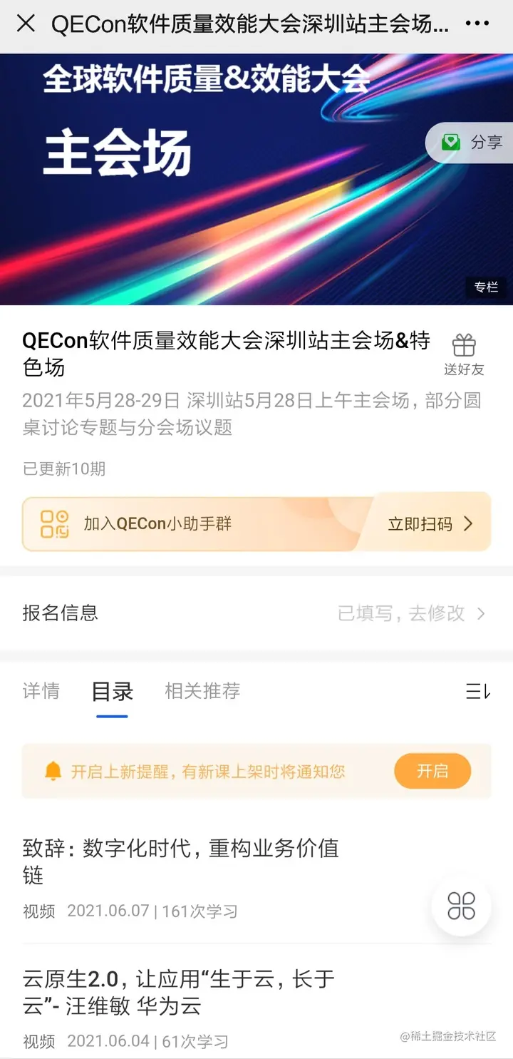 和主会场华为云副总裁等大佬的分享被 QECon 大会主办方一块先放了出来