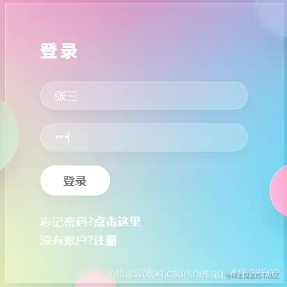 页面样式主要参考@Albert Yang【html+css实现漂亮的透明登录页面,HTML实现炫酷登录页面】,页面设计属实惊艳*★,°*:.☆( ̄▽ ̄)/$:*.°★* 。