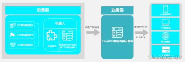 基于以上需求,我们推荐使用EasyGBS国标视频云服务,前端摄像头需支持4G,通过4G传输视频流,将移动机器人的监控设备注册到云端的EasyGBS。