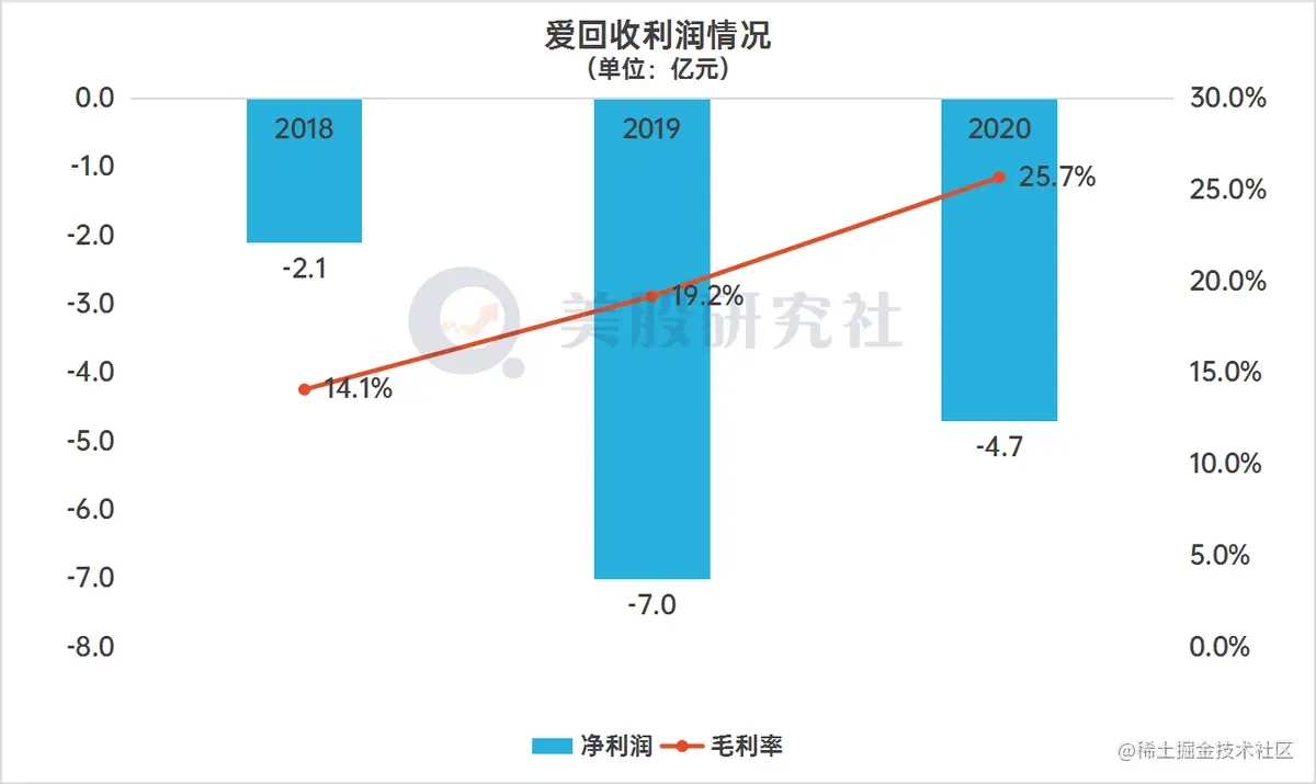 根据招股书,2018年、2019年、2020年公司分别实现毛利率14.1、19.2、25.7%,所以,在整体销售收入的铺垫下,二手产品广阔的毛利率空间给爱回收的线下门店创造了盈利机会,也扩展了公司整体的盈利预期。作为对比,手机厂商小米在2021年第一季度财报中公布的毛利率为18.4%,智能手机业务的毛利率只有12.9%。
