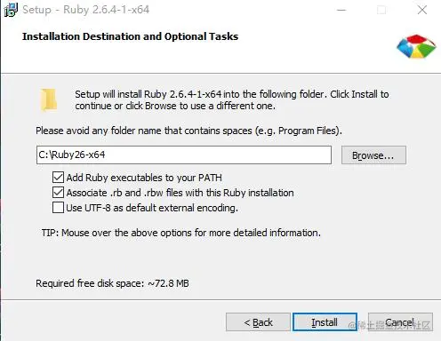 window下安装SASS首先需要安装Ruby,先从官网下载Ruby并安装。安装过程中请注意勾选Add Ruby executables to your PATH添加到系统环境变量。如下图: