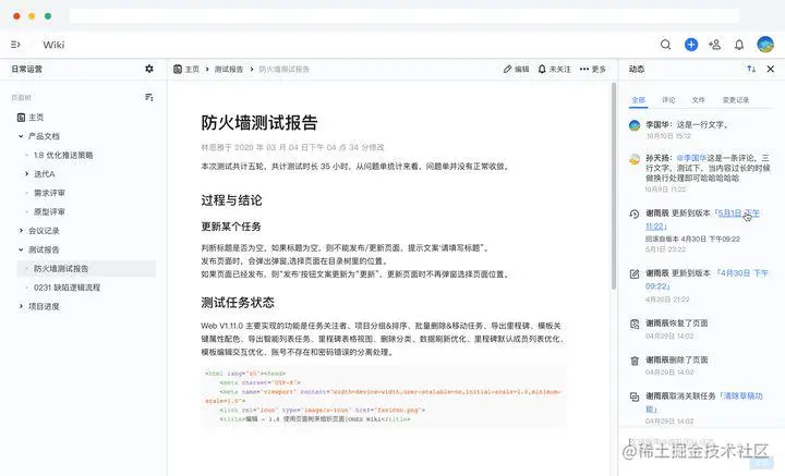 项目过程中的重要文档可沉淀在ONES Wiki知识库中,共享给相关团队成员,提高项目透明度。同时团队成员可以在文档的评论区进行讨论沟通,提升协作效率。