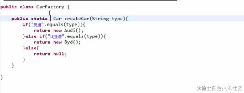 有违背开闭原则,如果添加一个宝马类,修改CarFactory.