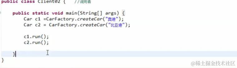 //调用者:现在调用者只要知道Car接口和CarFactory(创建者)就可以了