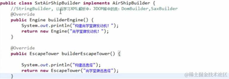 建造者的实现类:通过return new Engine("尚学堂牌发动机");创建子组件,