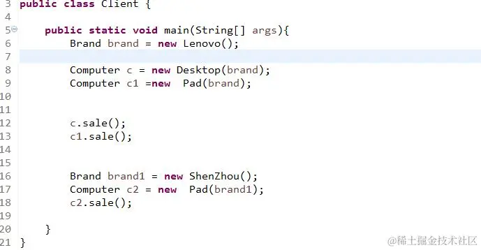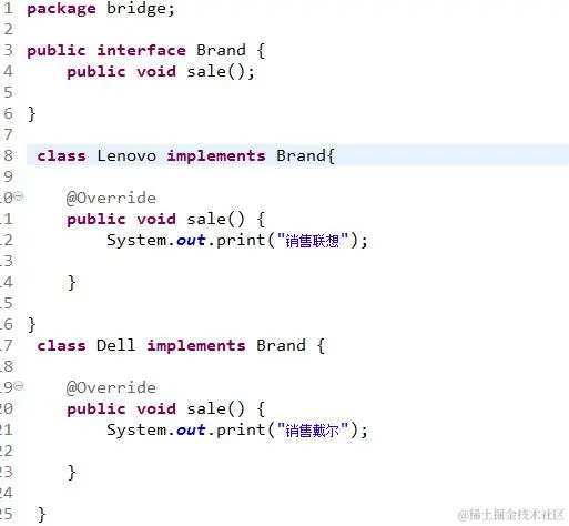 如本例中,将品牌设置为接口,通过实现这个接口,创建不同的品牌类\