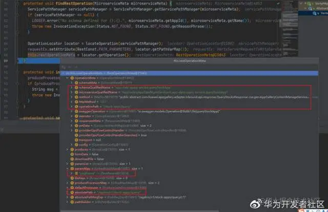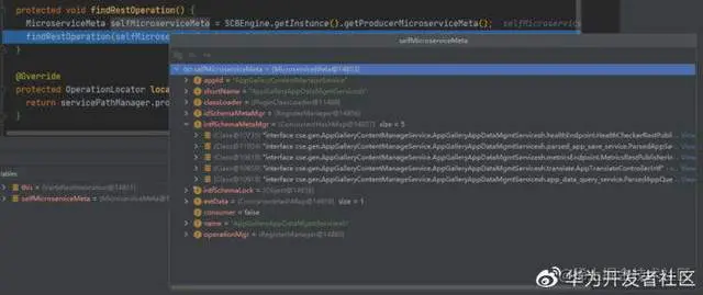 - findRestOperation(selfMicroserviceMeta):首先通过上面的 microserviceMeta 获取该服务下所有对外暴露的 url,然后根据请求的 RequestURI 和 Method 来获取 OperationLocator,进而对 restOperationMeta 进行赋值,其内容如下: