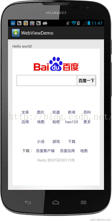 看下效果:并没有调用浏览器来加载uri,而是WebView自己的