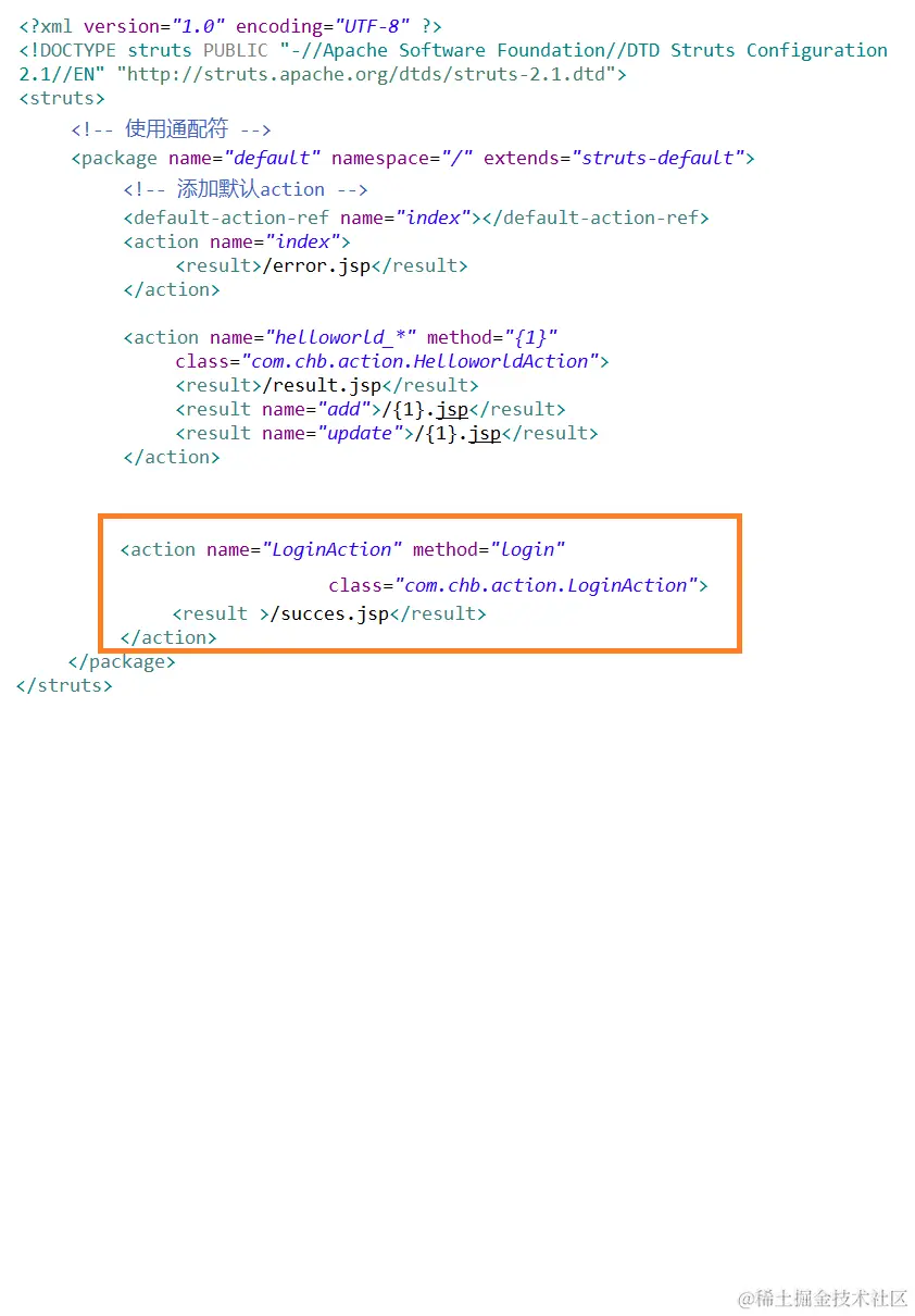 为了验证Acton可以接收属性, 在LoginAction中定义username和password: 在login()中打印属性值