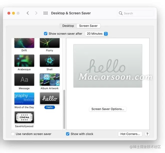 如何在 macOS Big Sur 中激活“Hello”屏幕保护程序?