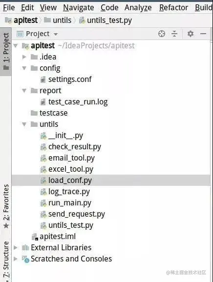 untils:工具集,send_request用来发送请求,email_tool用来发送邮件,excel_tool用来读取Excel中的数据,check_result用来校验结果,run_main用例执行入口,log_trace用来追踪日志。