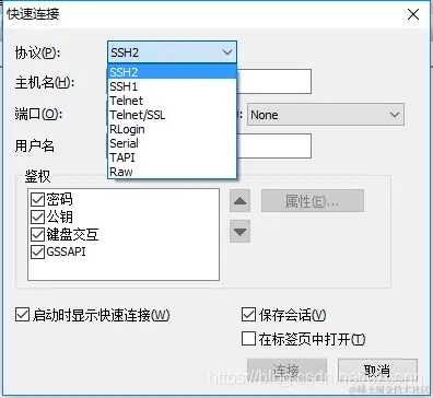 下图是SecureCRT新建连接的界面