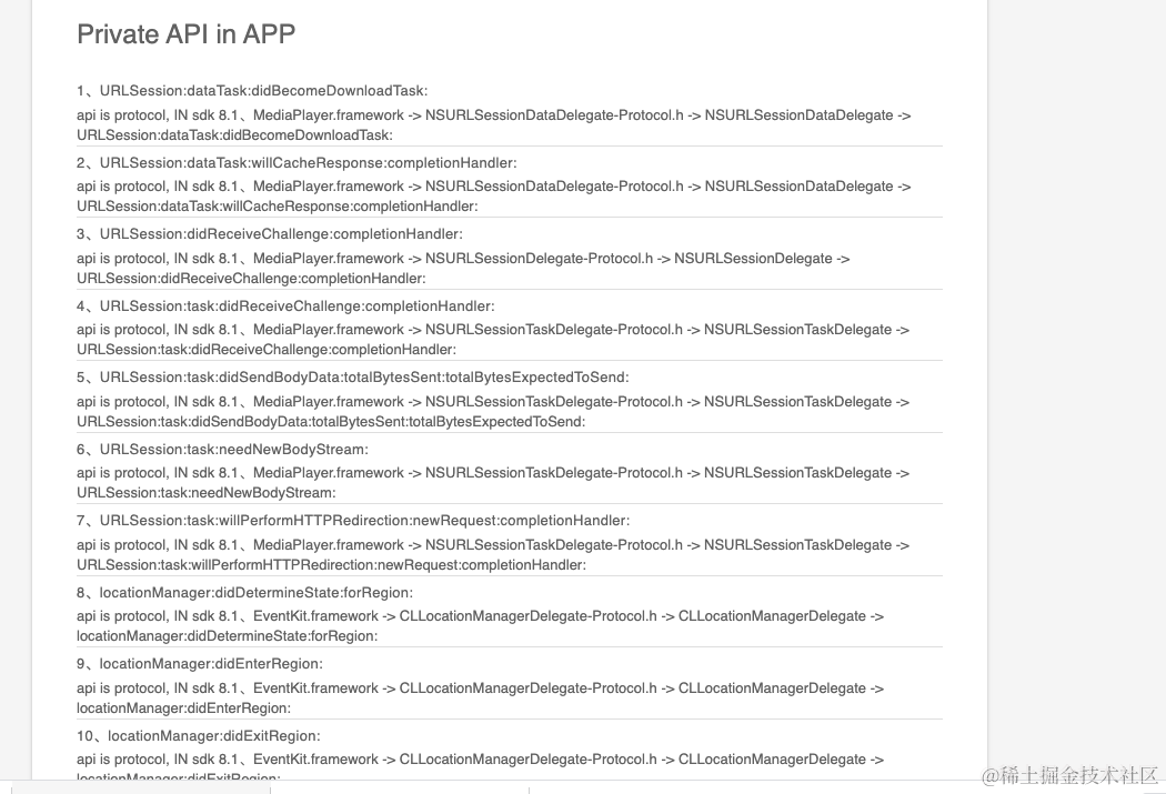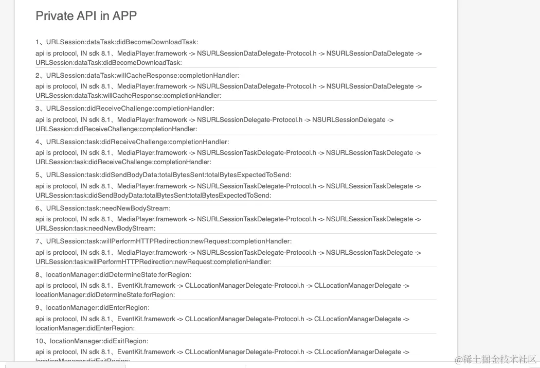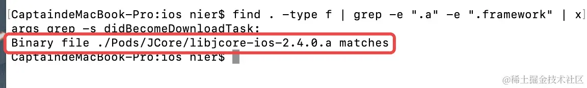 好家伙,这么多地方调用了私有API,检测是检测出来了,但是怎么搜索都是哪些三方库用到了这些私有API呢?网上说的用逆向方法,class-dump来查找,但是真的绕的太远了.我没那样做.我使用了一个命令: