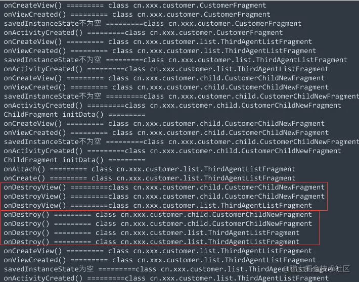 涉及Activity重建,那估计也跟Fragment生命周期,Fragment多层嵌套之类的脱不了干系,在BaseActivity和BaseFragment中把生命周期相关的回调都加上日志。