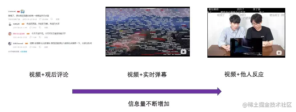 关于这点,让我们先看看视频平台的发展历史,早期的视频平台只提供了文字评论功能,观众在观看视频后,可以在视频下方留下评论,再后来由评论进化的 “弹幕” 大行其道,现在几乎成为了所有视频平台的标配。
