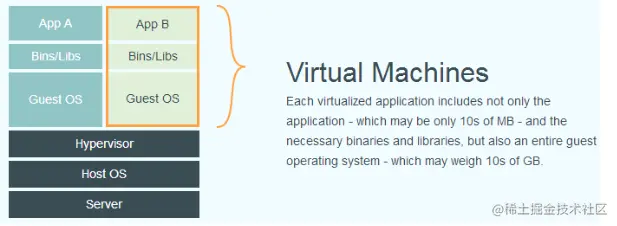 - 资源占用多 虚机启动需要占用几百M的内存。