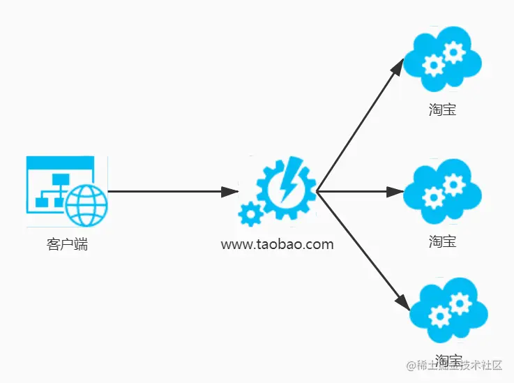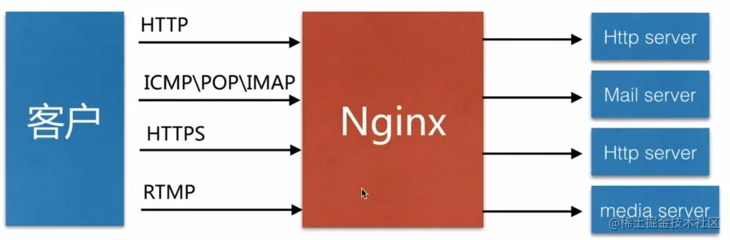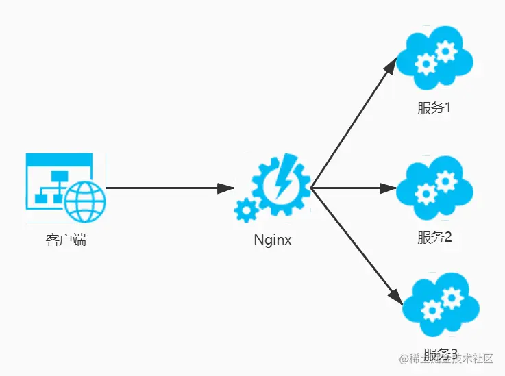 在现实生活中,有着代购这一现象,就是我们通过代购来购买一些东西。同样的基于nginx的代理服务就是,客户端与服务段之间是通过nginx这一代理来完成请求和响应的。如图