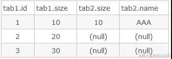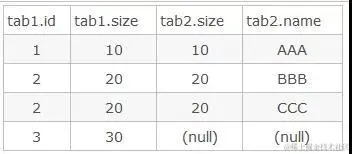 2、select * form tab1 left join tab2 on (tab1.size = tab2.size and tab2.name=’AAA’)