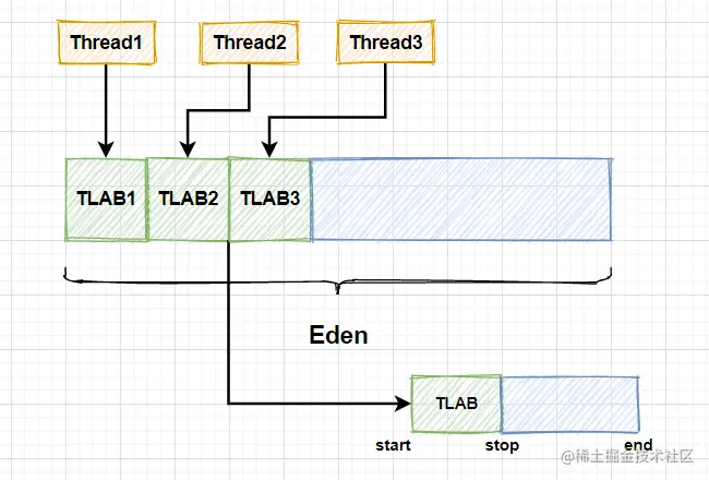 TLAB中成功分配内存(因为它的空间比较小),但JVM明确是将TLAB作为内存分配的首选; - 一旦对象在