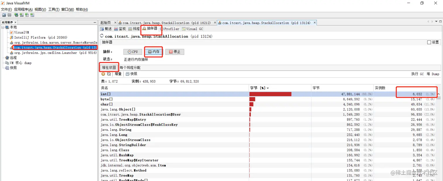 细心的小伙伴也应该能发现,我们在抽样器中的截图其实就是在堆中分配的对象。