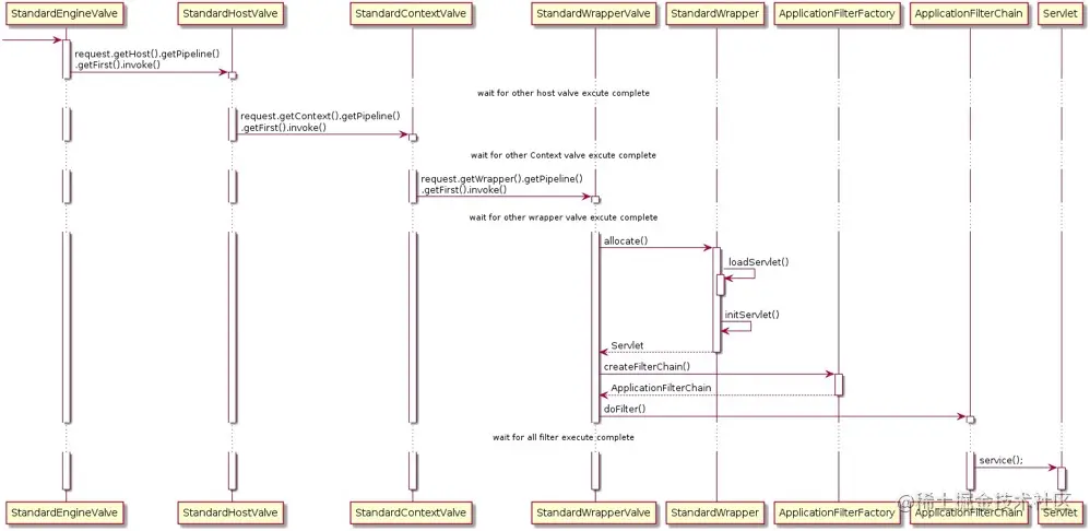 - 需要注意的是,基本上每一个容器的 StandardPipeline 上都会有多个已注册的 Valve,我们只关注每个容器的 Basic Valve。其他 Valve 都是在 Basic Valve 前执行。
