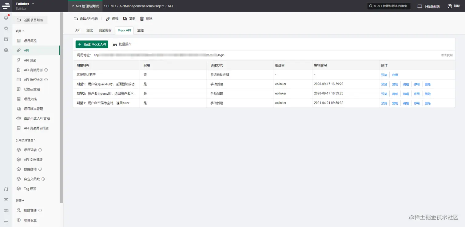 Mock集成自动创建并维护Eolinker中定义的APIMcok。每次保存API时都会更新此Mock,这意味着不必再费劲地创建Mock服务。单击Mock期望生成的预览,与团队一起设计迭代。
