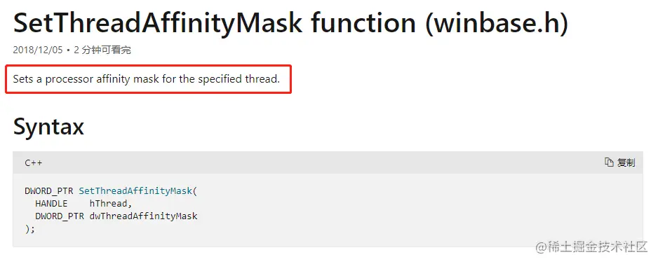 https://docs.microsoft.com/zh-cn/windows/win32/api/winbase/nf-winbase-setthreadaffinitymask?redirectedfrom=MSDN
