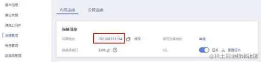 目标实例的“连接管理”页面,“内网连接”页签的“内网地址”。