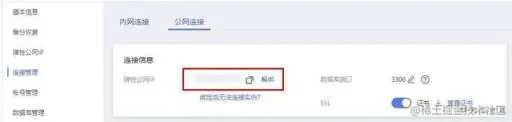 目标实例的“连接管理”页面,“公网连接”页签的“数据库端口”。