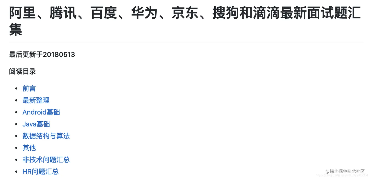 阿里、腾讯、百度、华为、京东、搜狗和滴滴最新面试题汇集github
