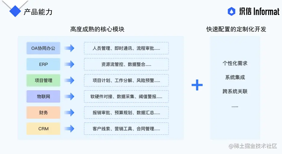 合理并且有效地运用低代码,不仅可以让我们工作高效地运行,还能最大程度保证团队目标的达成。我推荐使用织信Informat,它内置100+标准应用模板,覆盖:OA协同办公、ERP进销存、CRM客户管理、人事绩效财务、企业服务、个人及组织等多个应用场景。点击一键安装,即可免费试用。