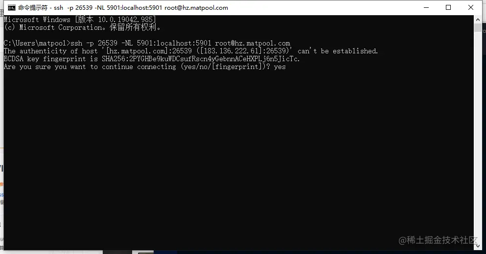 ssh -p 你的端口 -NL 5901:localhost:5901 root@hz.matpool.com