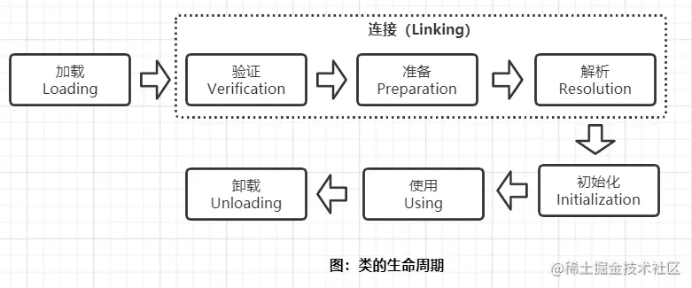类从被加载到虚拟机内存中开始,到卸载出内存,生命周期包括如下图: