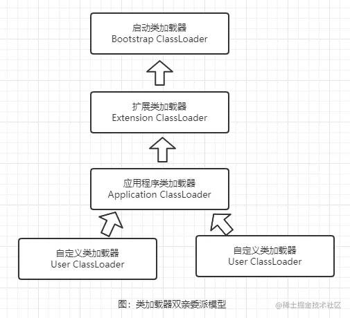 类加载器之间的层次关系,称为类加载器的双亲委派模型(Parent Delegation Model)。