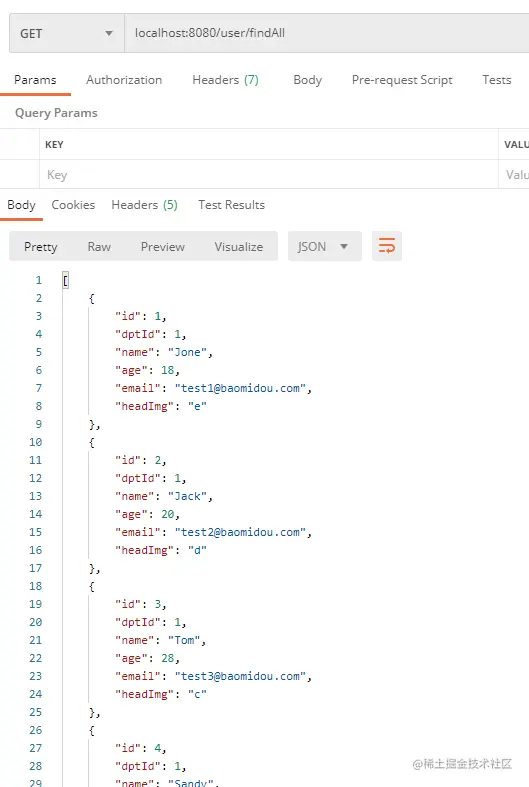 启动工程,然后用postman测试:查询所有:
