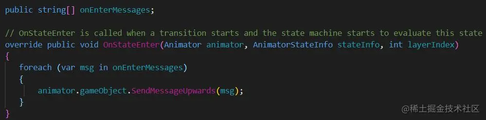 - OnStateEnter:当进入到这个状态(State)时,执行一次该函数