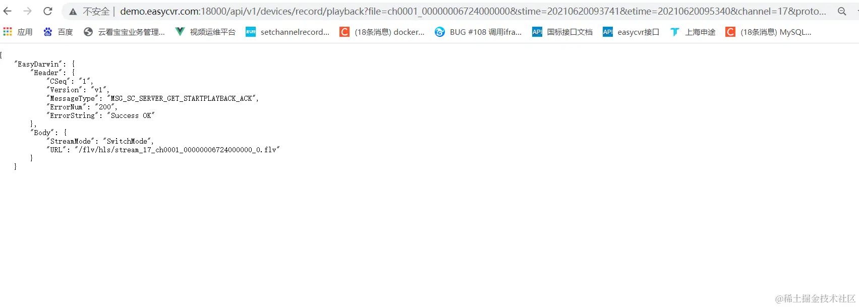 以上接口就是EasyCVR获取设备录像回看流地址的接口,调取该接口一共需要四个必选参数和一个备选参数,我们先简单讲下参数的获取方式。