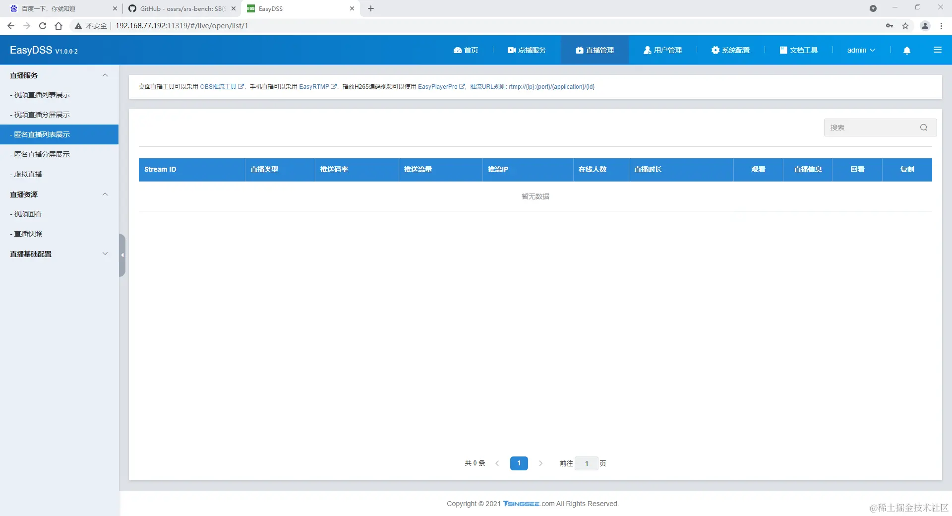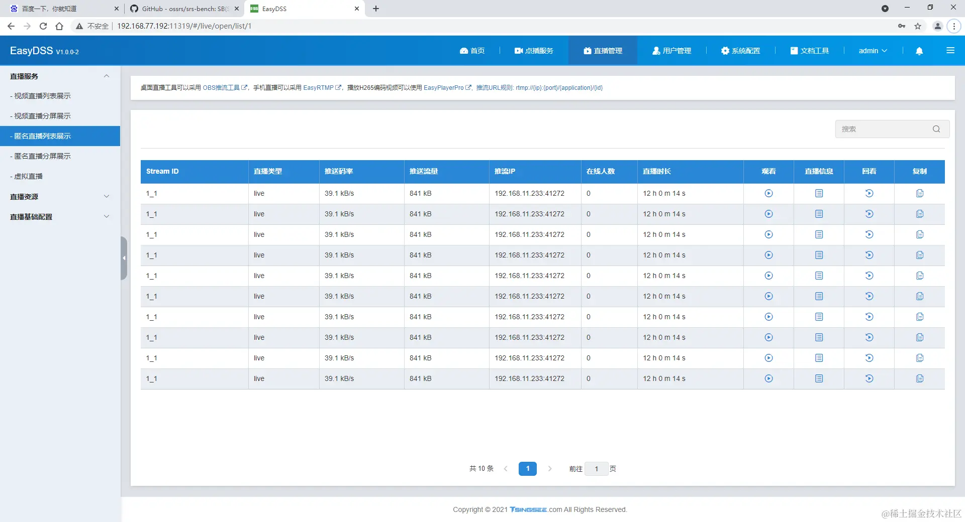 4.找到匿名直播,我们在srs的服务器运行下列命令来进行批量推流直播
