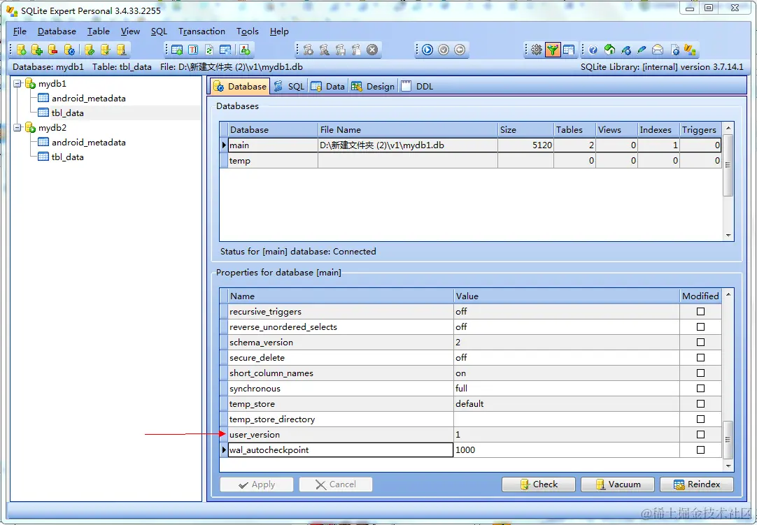 我们通过SQLite Expert看到的这个user_version是什么东西?经过在网络上反复查到资料,这个其实是sqlite数据库的"PRAGMA ".