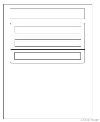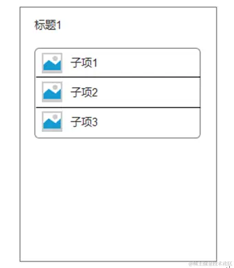 分成上部标题和圆角矩形子项区块。圆角矩形区块包含多个子项。图标可有可无。