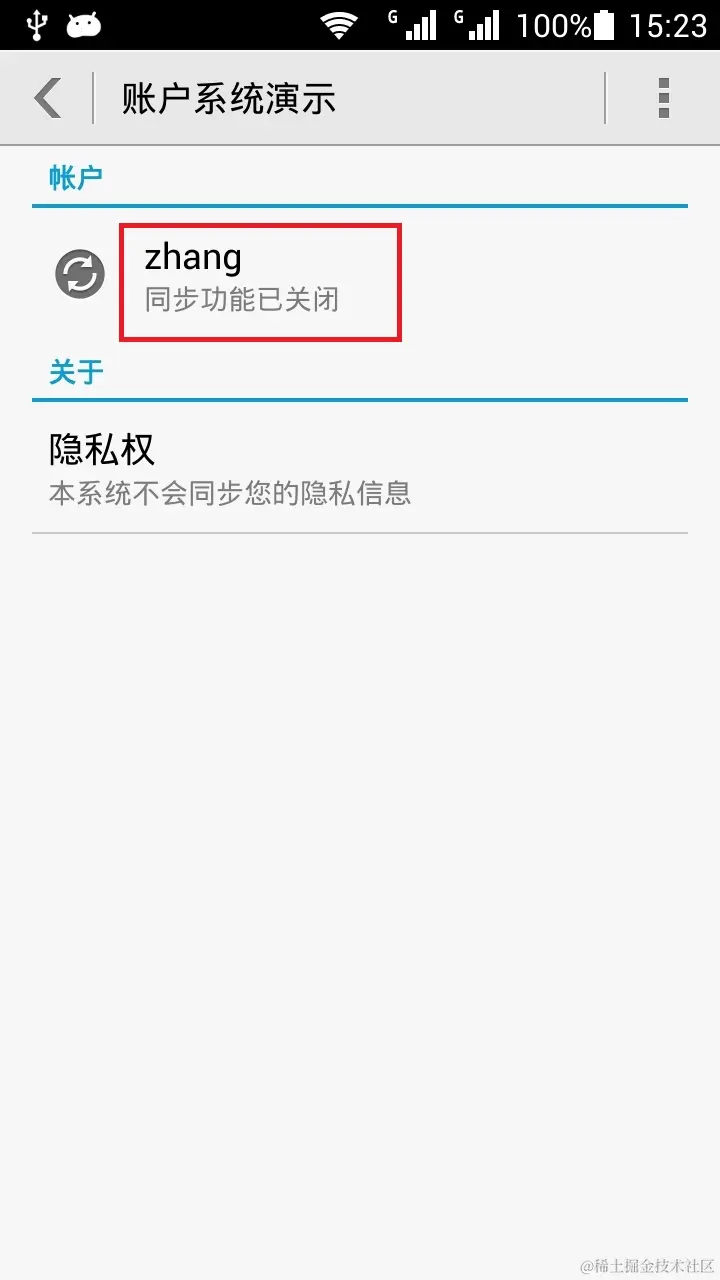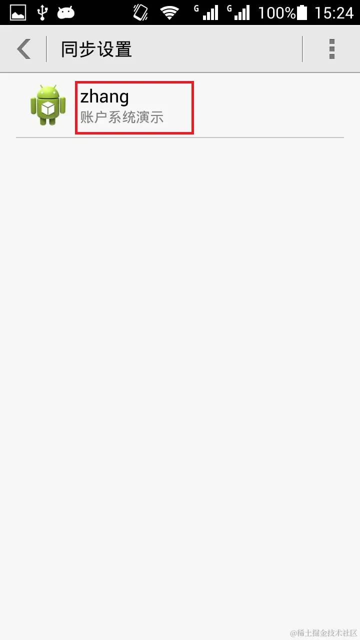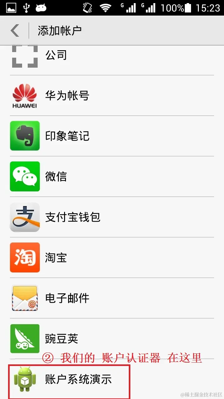 在android的系统设置页,有个“账户”分组,里面有很多的账户,很多app都使用了这个账户系统,比如“谷歌”,“淘宝”,“微信”,“华为”等。这些都是大公司呢,有没有可能我们也使用这个,让我们的软件的名称也出现在这里呢,答应是肯定的。看看效果图:
