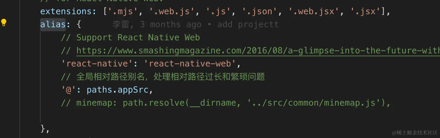 打开 webpack.config.js 文件,搜索 alias 关键字,修改加入下面这行。