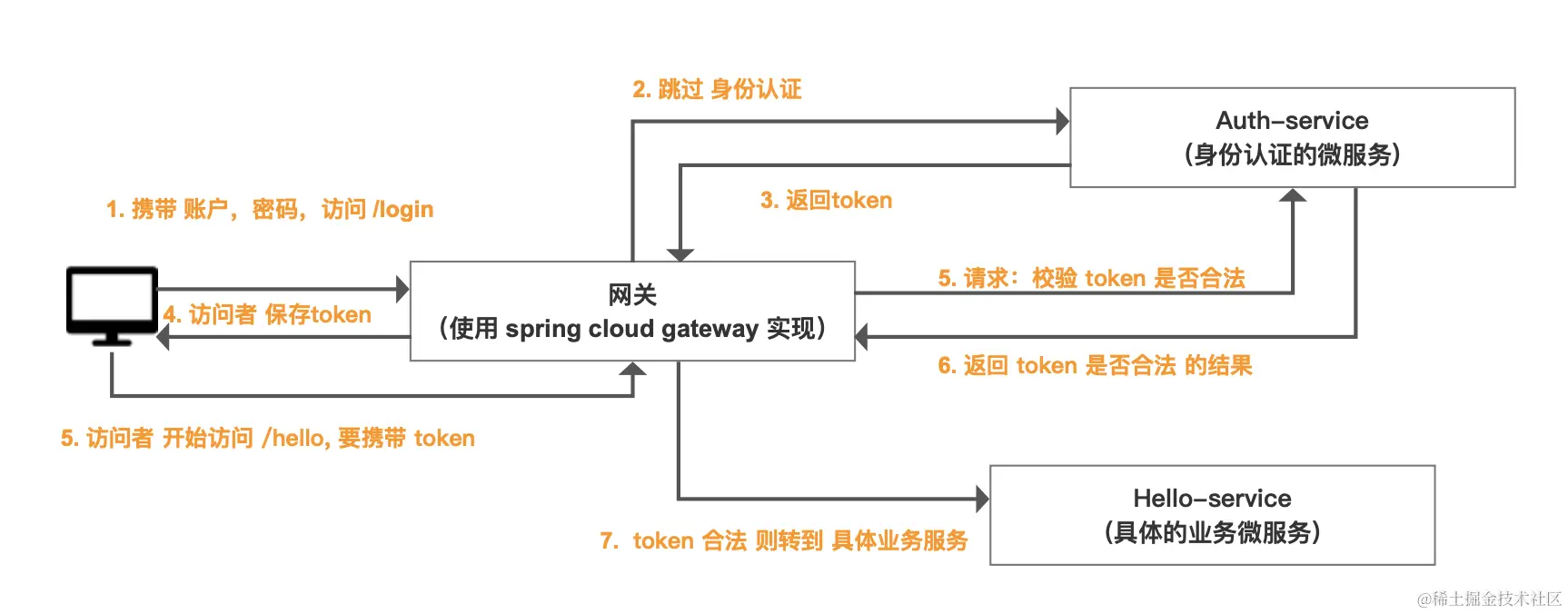 (1) 实现需要一个 gateway 的过滤器 AuthorizationFilter,它会截获所有的 请求。