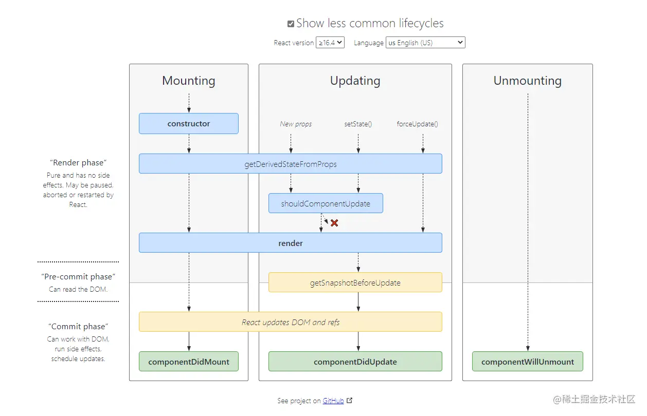 **注意:**本文所介绍的生命周期为 React 17.0.1 版本,读者时期也许会有改动,最终生命周期等方法和过程请以官网为主,react 官网