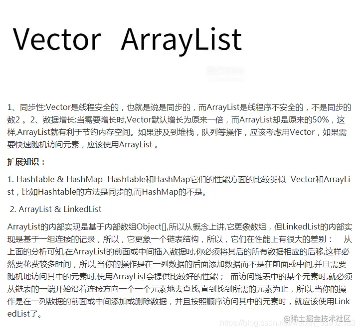 vector:就比arraylist多了个同步化机制(线程安全),因为效率较低,现在已经不太建议使用。在web应用中,特别是前台页面,往往效率(页面响应速度)是优先考虑的。