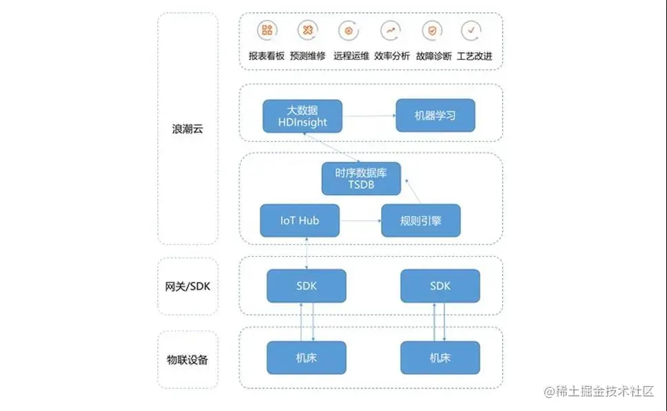 浪潮云IoT平台能够支撑预测维修、远程运维、故障诊断等设备监控功能的实现,满足数控机床厂家远程监控机床在用户现场的运行情况、监测机床关键参数的需要,实现故障快速响应,减少现场维修次数,降低数控机床客户故障维修时间、非计划停机次数、预测故障发生概率,提高机床的有效运行时间,提高投资回报率。