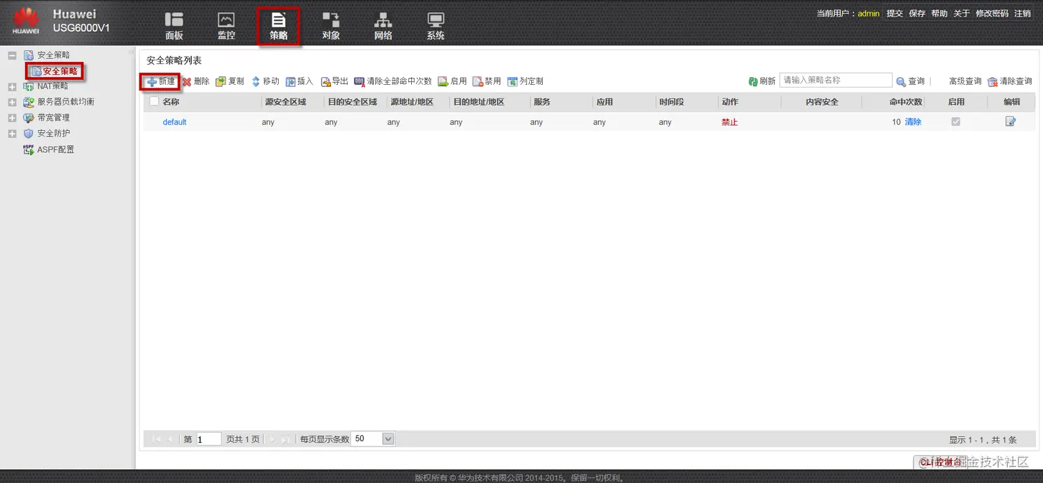 [FW1]security-policy //配置安全策略